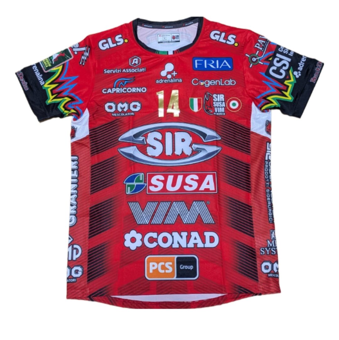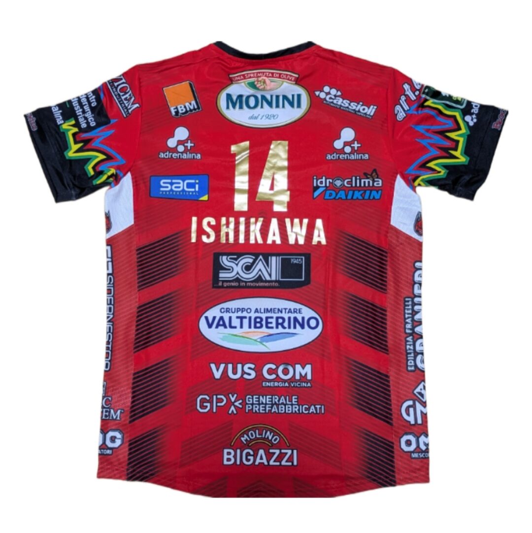 イタリアセリエA男子、ペルージャ(Perugia)の24/25シーズンアウェイ(赤)リーグ用ユニフォーム、背番号14番の石川祐希選手仕様です。