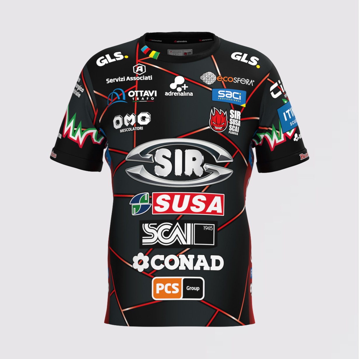 イタリアセリエA男子、ペルージャ(Perugia)の25/26シーズンのコッパイタリア用ホーム(黒)ユニフォームです。