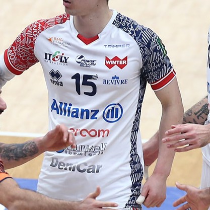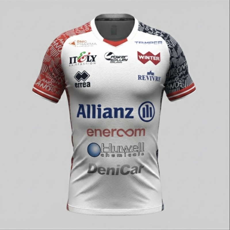 イタリアセリエA男子、パワーバレーミラノ(Powervolley Milano)の25/26シーズン公式ホームユニフォーム、背番号15番の大塚達宣選手仕様です(実際の商品には 15とOTSUKAがプリントされます)。